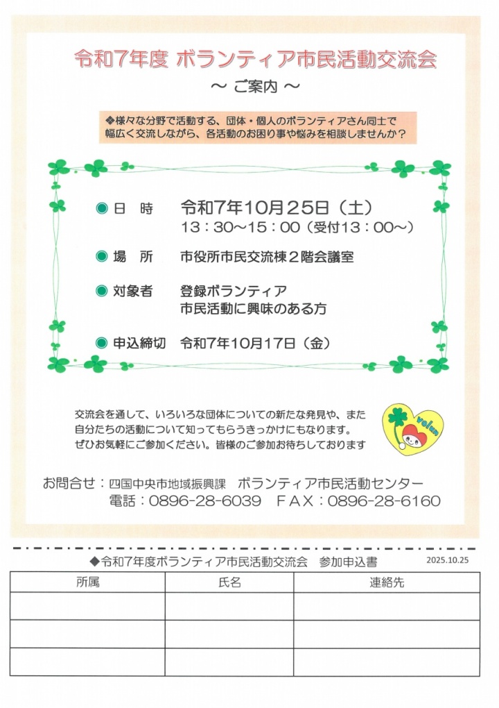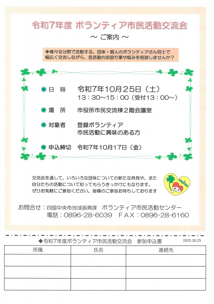 ボラ7通信№28令和7年10月号発行! 2025年10月01日 | ボラセンからのお知らせ ボラ7通信№28を発行しました! しこちゅ~すまいるフェスティバルの告知など掲載しています。 皆さま ぜひ読んでください。