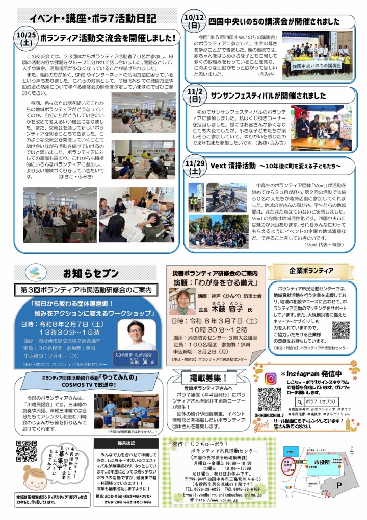 第3回ボランティア市民活動研修会開催のお知らせ 2026年01月05日 | ボラセンからのお知らせ 先日開催しました交流会に参加された皆さんの意見を参考に第3回研修会を開催いたします。奮ってご参加ください。